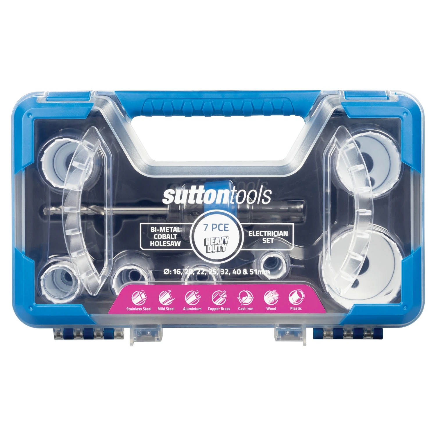 - Industrial quality holesaw designed for machine or hand drilling in steel, stainless steel, cast iron, non‑ferrous metals, plastic and wood