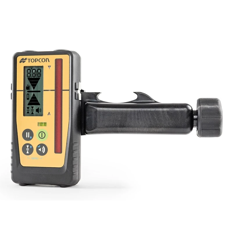 - The sensor offers three colored LED’s and a magnet mount for vertical operation, which is designed to be useful for steel erection or operator grade-checking while excavating. Alert icons appear on the LCD if the accompanying Topcon rotating laser instrument is disturbed (HI alert) or when the laser battery is low