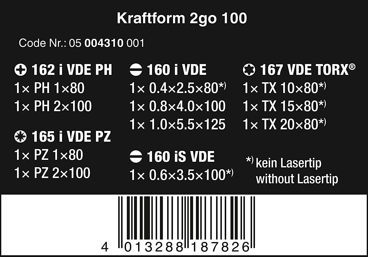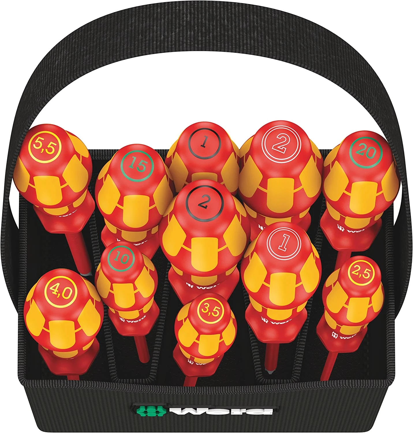 - Wera 11 VDE-insulated, Kraftform screwdrivers; with “Take it easy” Toolfinder; in the Wera 2go 4 quiver; comes with an adjustable partition element for individual sectioning